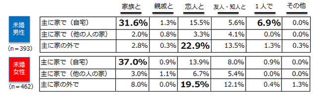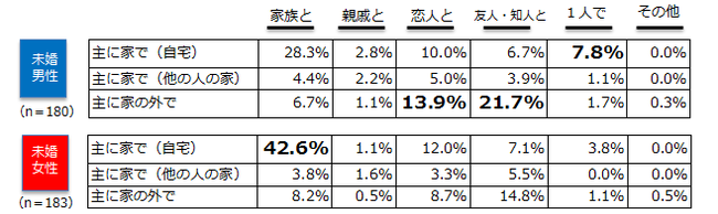 未婚男性と未婚女性は、「クリスマス」と「カウントダウン」を、「誰と」「どこで」過ごすのか?