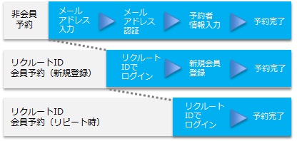 従来のメールアドレスを用いた非会員予約だけでなく、リクルートIDを使った会員予約ができるようになりました