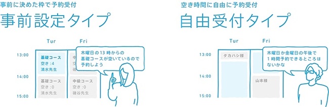 これにより、24時間ネット受付によりお客様からの予約の取りこぼしを防ぎ、店舗の「予約数の最大化」に貢献します。ヨガ教室、フィットネスクラブなどのレッスン・スクールから、イベント・セミナー、アクティビティ、歯科や診療所、貸し会議室など幅広い業態・サービスにおける「予約」でお使いいただくことができます。