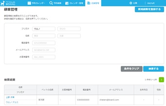 従来の紙での予約管理をオンライン上の予約スケジュールで管理することで同時に複数人が予約管理できるようになります。またペットサロンの空き時間をWEBサイトを通じて、リアルタイムにお客様へ公開できるようなります。さらに、ペット名で予約情報を検索・確認することができるなど、ペットサロン業務に最適な形で、予約業務を効率化いたします。