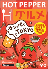 忘年会シーズンの強い味方!東京の飲食店情報 約1,300件掲載 『HOT PEPPER グルメ 東京23区版〜カンパイTOKYO〜2013年冬号』 期間限定で復活!! 11月15日(金)より都内160か所で無料配布スタート!