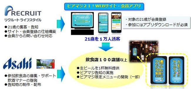 〜100店舗以上の賛同飲食店でビール1杯無料〜 アサヒビールとリクルートライフスタイルが協働で21歳限定!若者需要創出企画「ビアマジ!21」を実施