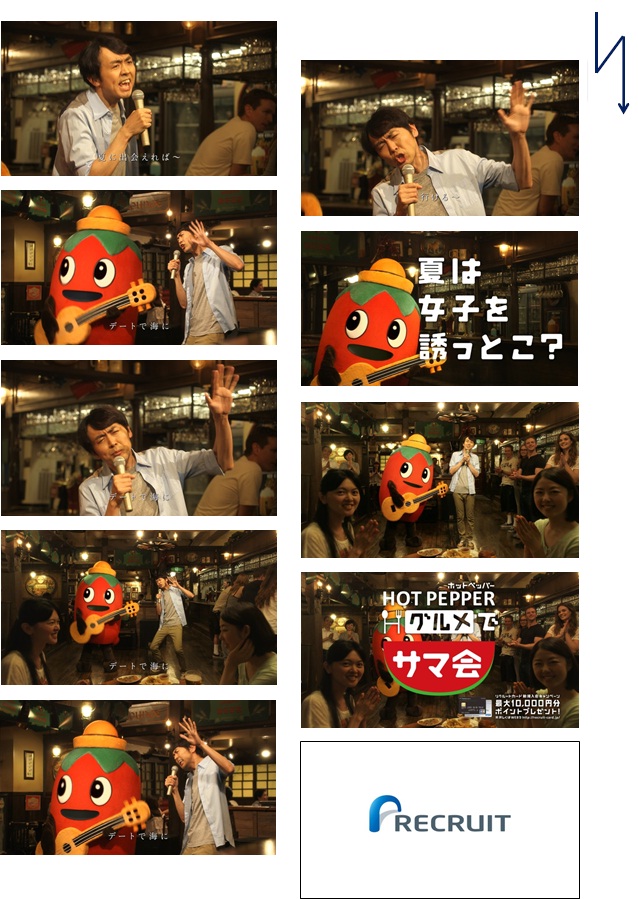 新TV-CMでは、様々なシチュエーションで夏の飲み会「サマ会」を合言葉に「誰かを誘って飲みに行こう!」と歌で表現しています。『ホットペッパーグルメ』のCM初登場となるのはアンガールズ田中さん。『ホットペッパーグルメ』キャラクター・ペパ郎とデュオを組んで自慢の歌声を披露し「夏は女子を誘っとこ?」と呼びかけています。
