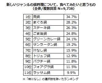 ■食べてみたい新ジャンル鍋1位は「貝鍋」 “高級食材”鍋も続々!