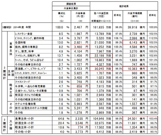調査名:外食市場調査(2014年4月〜2015年3月分)
