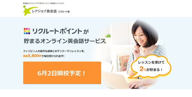 リクルートライフスタイルとレアジョブが業務提携「 レアジョブ英会話 リクルート校 」 開校リクルートポイントで英語が学べる!リクルートIDで簡単登録!リクルートポイントも貯まる!