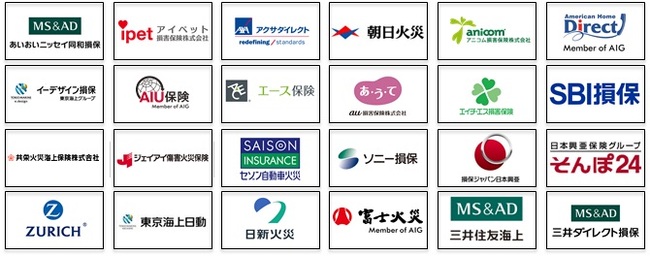 取り扱う保険商品は、下記24社の、自動車/ドライバー/バイク/自転車/傷害/地震/ペット/海外旅行/海外留学/駐在/国内旅行/ゴルフ/スキー/火災/盗難/家財の16種類の保険です。今後も、皆さまの声を伺いながら、より便利なラインナップになるよう努めてまいります。
