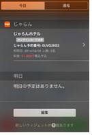 ◆『じゃらん』アプリは「App Extensions(Today)」にも対応。アプリ経由で宿泊施設を予約すると、当日、iPhoneの「通知センター」画面に予約情報が表示される。