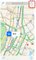 「Maps」アプリで「共有」ボタンをクリックし、表示された「シート」画面で「周辺の飲食店」をクリックします。