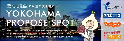 プロポーズ応援サイト「プロポーズゼクシィ」内に、 ロマンティックな横浜の観光スポット活かしたプロ ポーズ方法を提案する特設サイト 「YOKOHAMA PROPOSE SPOT」を展開しています。 宿泊予約サイト「じゃらんnet」やグルメ・ クーポン情報サイト「HOT PEPPERグルメ」と 連携し、横浜市内のホテルや飲食店が、本事業の ために設定した特別なプロポーズプランの予約も できます。