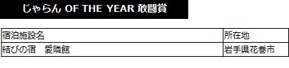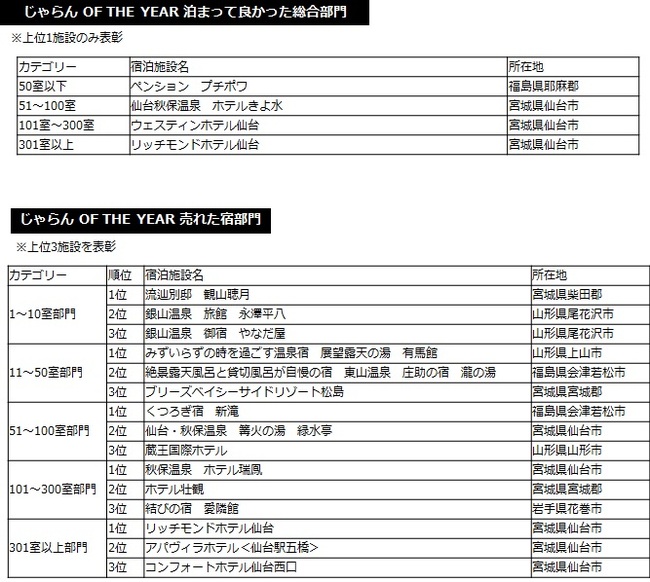 2013年度の1年間に顕著な実績をおさめた宿泊施設を表彰 「じゃらんアワード2013」 東北ブロック発表!