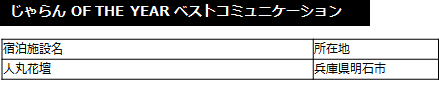 2013年度1年間で素晴らしい実績を収められ、また取り組みをされた宿泊施設に贈られる『じゃらん』認定の表彰です。顕著な実績を収められた「じゃらん OF THE YEAR 売れた宿部門」や口コミ評点が高い「じゃらん OF THE YEAR 泊まって良かった総合部門」、また今年新たに設けた「じゃらん OF THE YEAR 敢闘賞」「じゃらん OF THE YEAR ベストコミュニケーション」などを、全国のブロック(北海道、東北、関東・甲信越、東海、近畿・北陸、中国・四国、九州、沖縄)ごとに表彰させて頂きます。