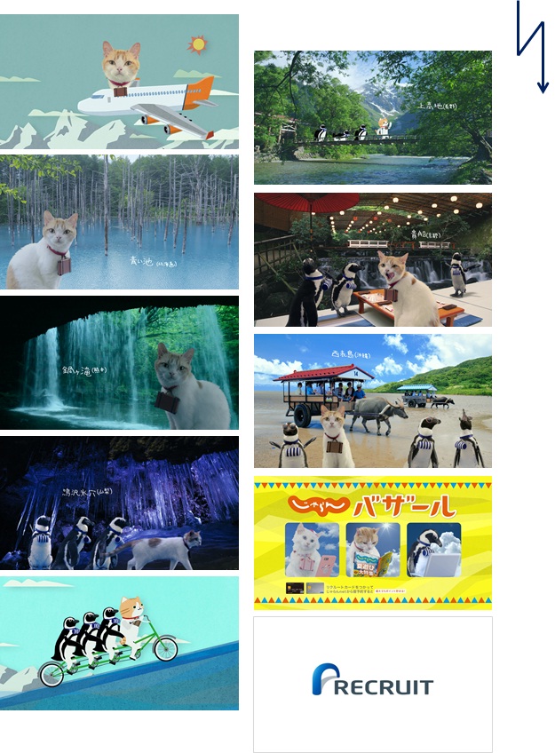 CMのオンエア期間、宿泊予約サイト『じゃらんnet』では、夏旅を応援する「じゃらんバザール」を実施します。その日の予約から使える割引クーポン(枚数限定)や、『じゃらんnet』の限定プランなど、夏の旅行をお得にするさまざまなサービスを提供します。さらに、「じゃらんバザール」の専用ページでは、「にゃらん」たちがCM内で訪れた「絶景」「涼」の12スポットを紹介しており、夏旅の計画を立てる際のお役たち情報としてご覧いただけます。