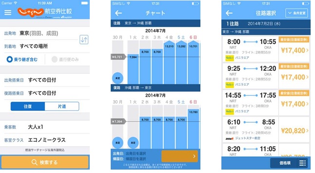 ・アプリ名:じゃらん航空券比較