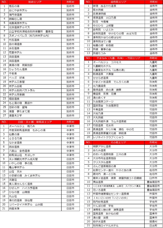 「お湯マジ!22 in おんせん県おおいた」利用施設一覧(全102施設)