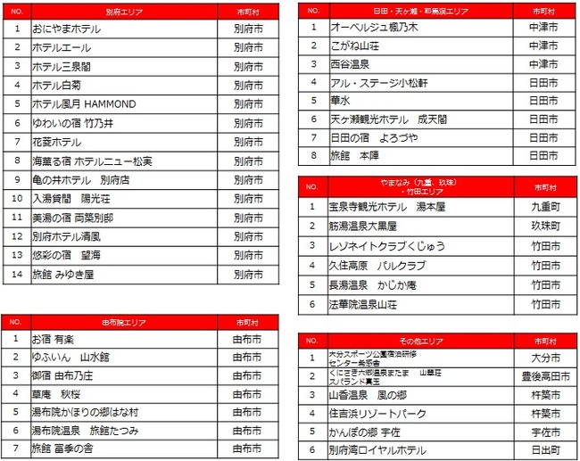 「日本一のおんせん県おおいたへご招待キャンペーン」大分県内協賛宿(全41施設が協賛予定)