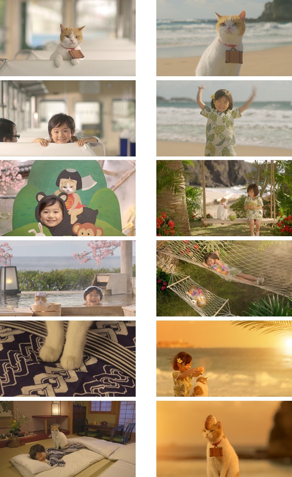 CM放送の度、SNSを中心に「かわいい!」「癒される〜」と反響を呼ぶ人気のCMシリーズ。これまでに14回の放送を数え、全国各地のお出かけスポットを巡る中で、恋をしたり、弟子が出来たり、その人情あるストーリーも楽しみの一つとなっています。2014年3月からは旅の達人こと初代「にゃらん」を師匠と仰いできた「でし」が二代目を襲名し、今回の放送で晴れて1周年となります。記念すべき作品では本CMシリーズで初めて可愛らしい男の子と女の子が「にゃらん」の旅のお供として登場します。