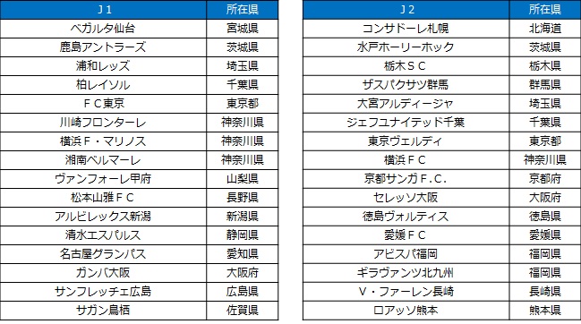 ■参画クラブ:J1クラブの16クラブ / J2クラブの16クラブ