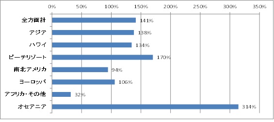 →羽田発(前年比158%)、名古屋発(前年比139%)が特に好調。