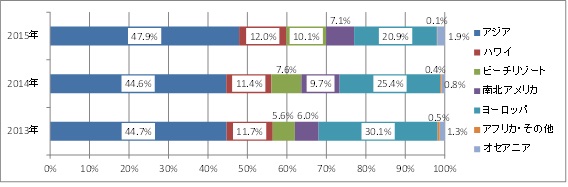 のいずれかが日程に含まれる旅行。2015年、2014年は同年1月1日〜3月22日までに発生した問合せを集計。