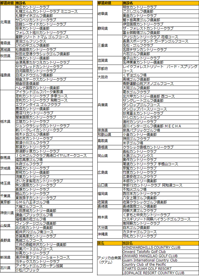 『ゴルマジ!20』 ゴルフ場参画一覧(2015年5月20日時点)※都道府県別 五十音順