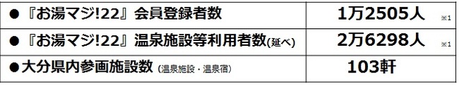 大分県内温泉施設103軒が協力 22歳会員1.2万人超え、延べ2.6万人が無料で入浴! 『お湯マジ!22 in おんせん県おおいた』実施結果報告