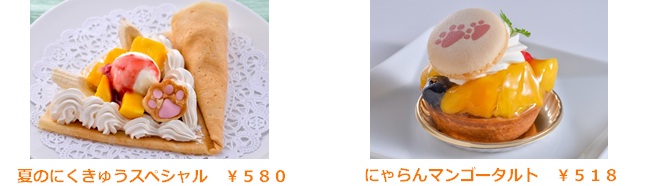 マンゴーや桃など、夏に旬を迎えるフルーツを使用したにゃらんスイーツを展開