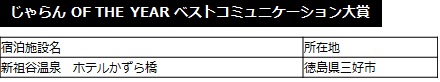この度、2013年度の「じゃらん OF THE YEAR 敢闘賞」に続き、2年連続で「じゃらんアワード」受賞となった。