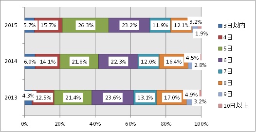 データ4:夏休みツアー問合せシェア 日数別(2013〜2015年比較)