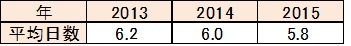 データ5:夏休みツアー問い合わせ 平均日数(2013〜2015年比較)