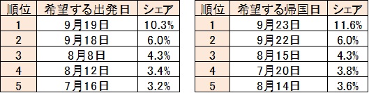 データ6:夏休みツアー問い合わせシェア 希望出発日・帰国日(日にち別)