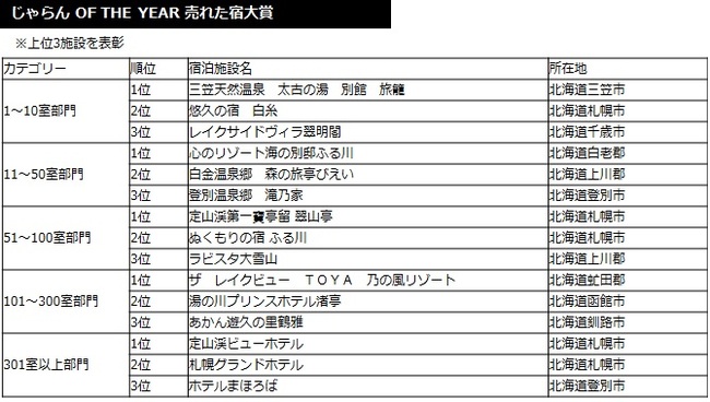 2014年度の1年間に顕著な実績をおさめた宿泊施設を表彰 「じゃらんアワード2014」 北海道ブロック発表!