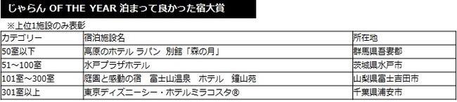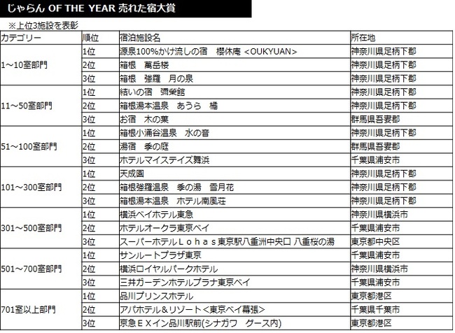 2014年度の1年間に顕著な実績をおさめた宿泊施設を表彰 「じゃらんアワード2014」 関東・甲信越ブロック発表!