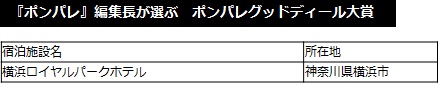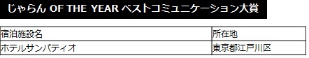 2014年度1年間で素晴らしい実績を収められ、また取り組みをされた宿泊施設に贈られる『じゃらん』認定の表彰です。顕著な実績を称える「じゃらん OF THE YEAR」では、「泊まってよかった宿大賞」「売れた宿大賞」「プロフェッショナル大賞」「ベストコミュニケーション大賞」を宿泊施設に贈ります。また今年「ポンパレ編集長が選ぶポンパレグッドディール大賞」などを新設し、全国のブロック(北海道、東北、関東・甲信越、東海、近畿・北陸、中国・四国、九州、沖縄)ごとに表彰致します。