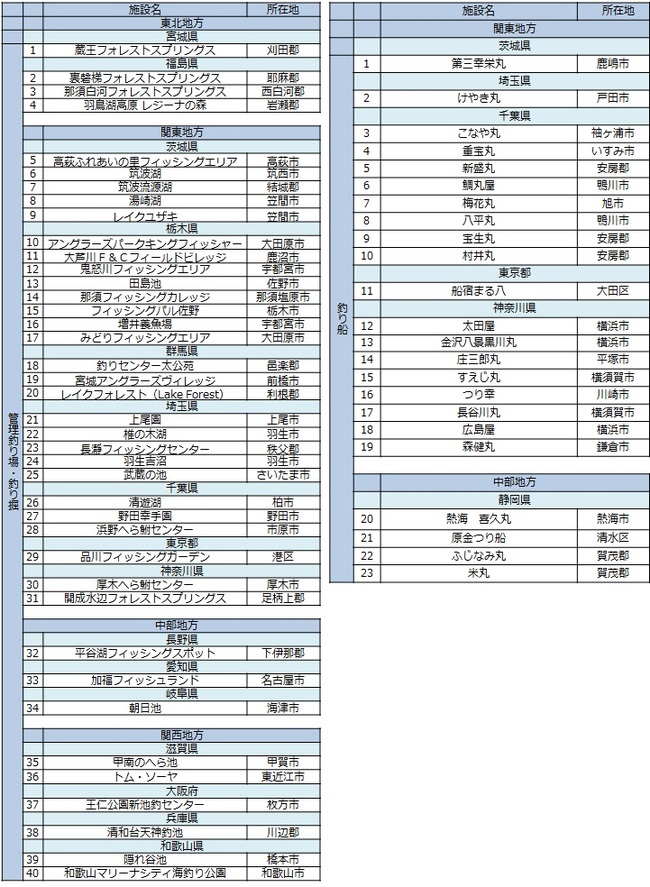■参画施設: 23の釣り船、40の管理釣り場・釣り堀(2015年7月13日時点、9月末に施設追加予定です)