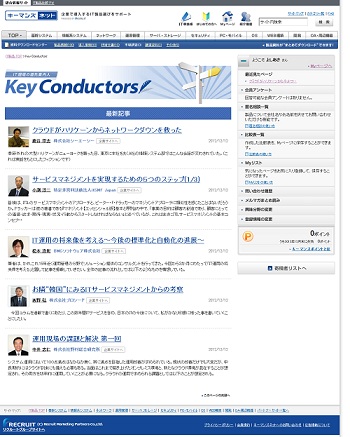 株式会社リクルートマーケティングパートナーズ(本社:東京都千代田区 代表取締役社長:鬼頭秀彰)が運営するIT製品情報を掲載する無料会員制サイト『キーマンズネット』(http://www.keyman.or.jp/)は、12月12日(水)から、新コンテンツの「Key Conductors」をスタートいたします。