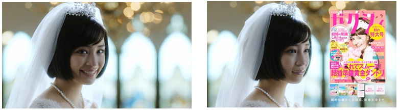 撮影は前回同様、表情のみで花嫁の心情を演じるとても難しい役どころです。
