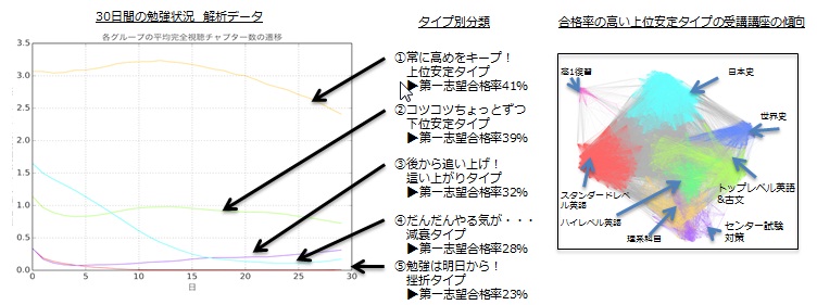 勉強スタイル別に受験生を5タイプに分けることができました。