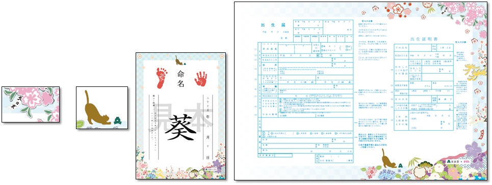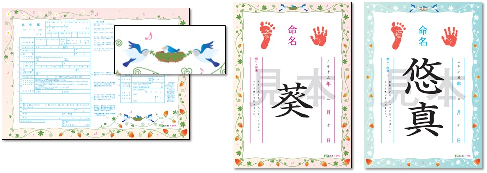 ※出生届と命名紙は「まちキュン・ご当地婚姻届」にベビーモチーフが加わったシリーズ感のあるデザインです。