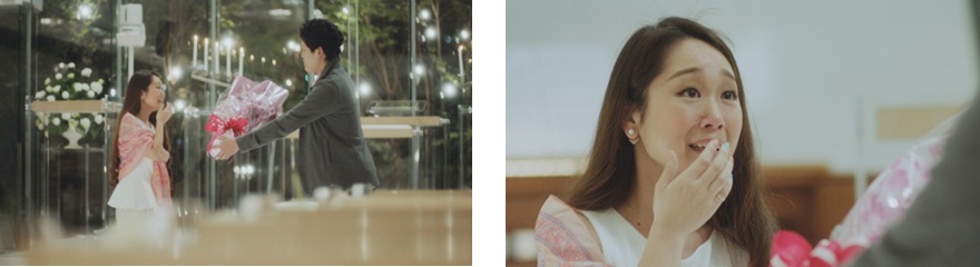 ▼「プロポーズされたら、ゼクシィ」CM 愛を叫べ篇 一般人カップルのプロポーズの一コマ