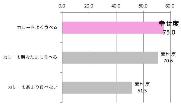 カレーをよく食べる人とあまり食べない人の幸せ度(TOP3/7段階中)比較