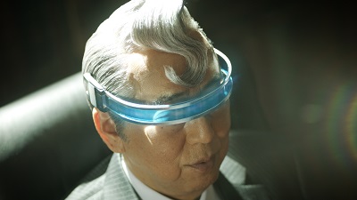 ▲未来っぽい(!?)容姿をしたナゾの校長役を演じる岸部さん。