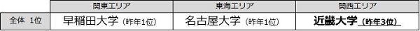 ・関西エリアでは、「近畿大学」が4年ぶりに1位になった。