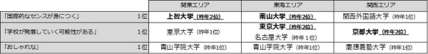 また、女子で「愛知県立大学」が、 2008年の調査開始以来初めて1位になった。