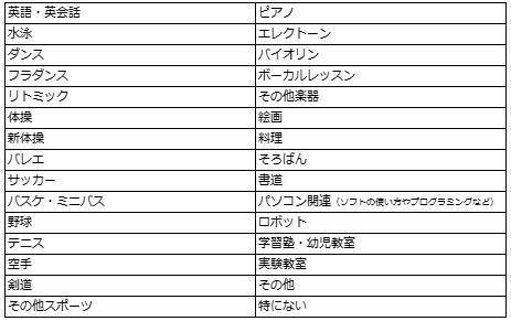 【調査対象の学び事・習い事一覧】