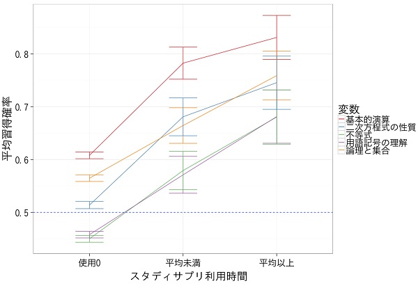 行動経済学や心理学、統計学において先進的な研究を行っている慶應義塾大学 星野崇宏教授と共に、同氏の専門領域である「認知診断モデル」(※1)を活用した学習者の学力分析の研究を4月より開始。この度、高校1年生「数学」において認知診断モデルに基づくコンポーネント(※2)毎のオンライン講義動画サービス『スタディサプリ』と学習習得率について検証を行いました。