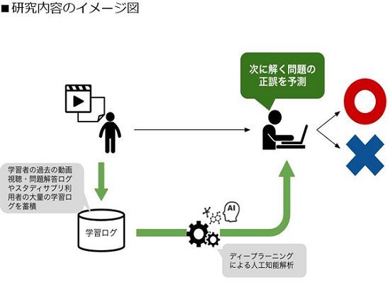 『スタディサプリ』での学習者の動画視聴や問題解答の学習ログを最新の機械学習解析「ディープラーニング」を用いて解析し改善を重ねた結果、小学校5年生の算数において精度90%で解けない問題の約30%を当てることができました。