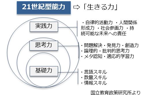 米国デューク大学教授によれば「2011年に小学校に入学した65%の子どもが、今、存在しない職に就く」と言われています。それは、人工知能(AI)により代替される職が増加する一方で、新しい職が現れることを意味します。予測が出来ない、これからの時代に必要な能力とはどのようなものか。高度経済成長期は、情報処理力が重視されたと言われ、正解は一つと教えられた時代でもあります。