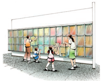参画企業に建物模型や映像、建材、資料等を展示いただくことで、