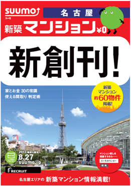 株式会社リクルート住まいカンパニー(本社:東京都千代田区 代表取締役社長 野口 孝広)が企画発行する新築マンション情報誌『SUUMO新築マンション名古屋』が2013年8月27日(火)に新創刊されます。